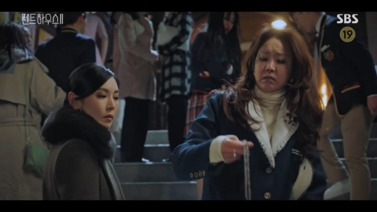 천서진은 드레스를 불태운데 이어, 하은별이 범행도구 트로피를 사물함에 놓고 왔다는 말에 학교로 향했습니다. 하지만 그때 현장을 수색하러 온 오윤희와 강마리(신은경)가 다급하게 사물함 쪽으로 가는 천서진을 목격하고는 따라가 현장을 덮쳤습니다. 그러나 트로피는 하은별의 사물함이 아닌 주석경의 사물함에 있었고, 하윤철이 하은별의 전화를 받고 미리 옮겨놨다는 사실이 밝혀져 소름을 자아냈습니다.