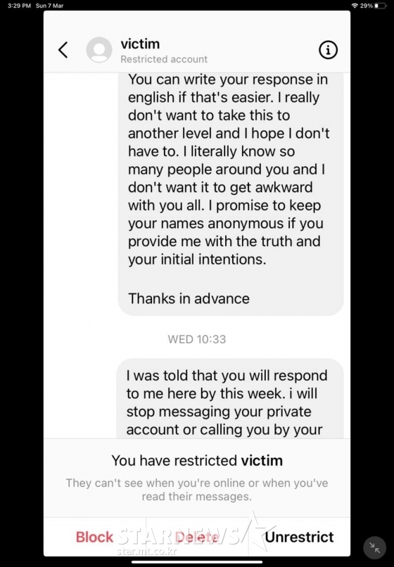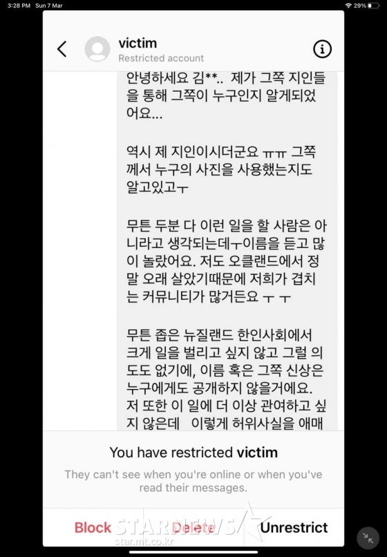 앞서 조병규로부터 학교폭력을 당했다고 주장한 피해자는 이날 인스타그램을 통해 "뉴질랜드 학폭 글을 올린 이후 소속사 법률대리인으로부터 고소와 상상할 수 없는 금액의 손해배상을 언급하는 연락을 받았다"고 했습니다.