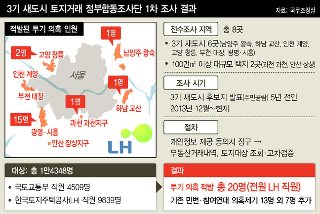 정부합동조사단이 LH 직원 땅 투기 의혹 1차 조사 결과 20명에게서 투기 의혹이 발견되었다고 하는데요, 하지만 대상자가 크게 밑돌고 있어 '부실 조사' 논란이 불가피할 전망입니다.
