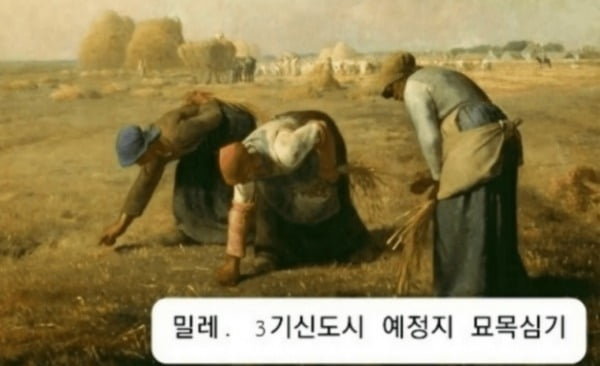 또 MBC 인기 예능 프로그램 '나 혼자 산다'의 로고를 'LH 혼자 산다'로 바꾼 로고, 보상금을 더 받기 위해 묘목을 심은 꼼수를 비판하기 위한 밀레의 작품 '이삭줍기'를 '묘목 심기'로 바꾼 합성 사진 또한 영화 패러디 등이 이목을 모았습니다.
