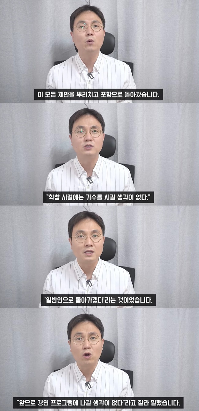 이진호는 "이러한 행보다 놀라운 것은 단지 '앞으로 경연 프로그램에 나가지 않겠다'고 밝혀서가 아니다"며 "향후 가수 활동에 대한 의지가 전혀 드러나지 않았기 때문이다"고 말했습니다.
