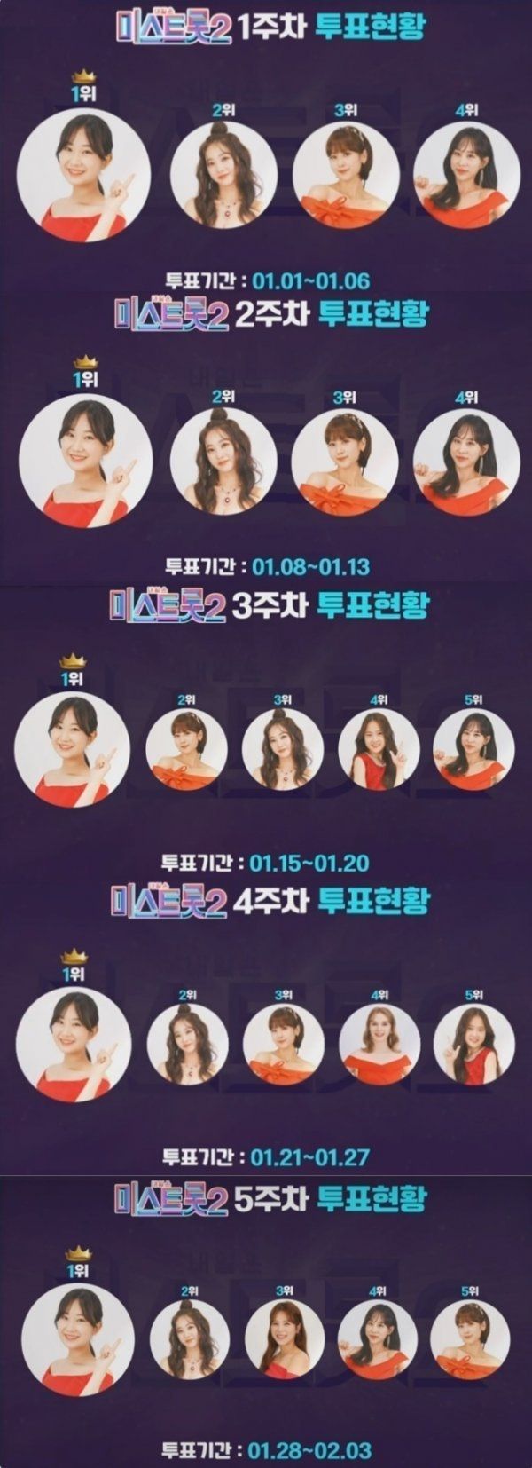 전유진은 TV조선 미스트롯2 출연 당시 5주 연속 대국민 투표 1위를 차지하고 미션곡 영상 조회수가 급증하는 등 많은 사랑을 한 몸에 받았던 출연자입니다.