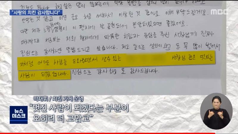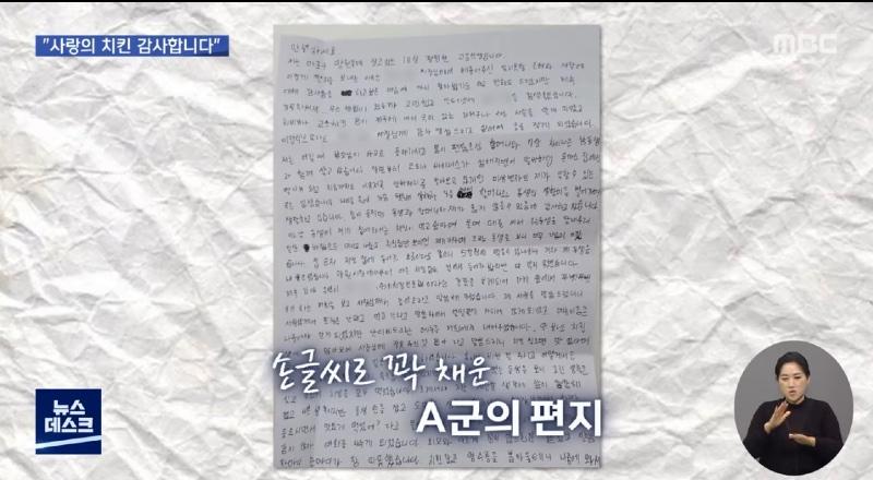 지난달 온라인 커뮤니티 등에서는 치킨 프랜차이즈 철인 7호 부산 본사에 고등학생 A군이 보낸 손편지가 화제가 되었습니다.