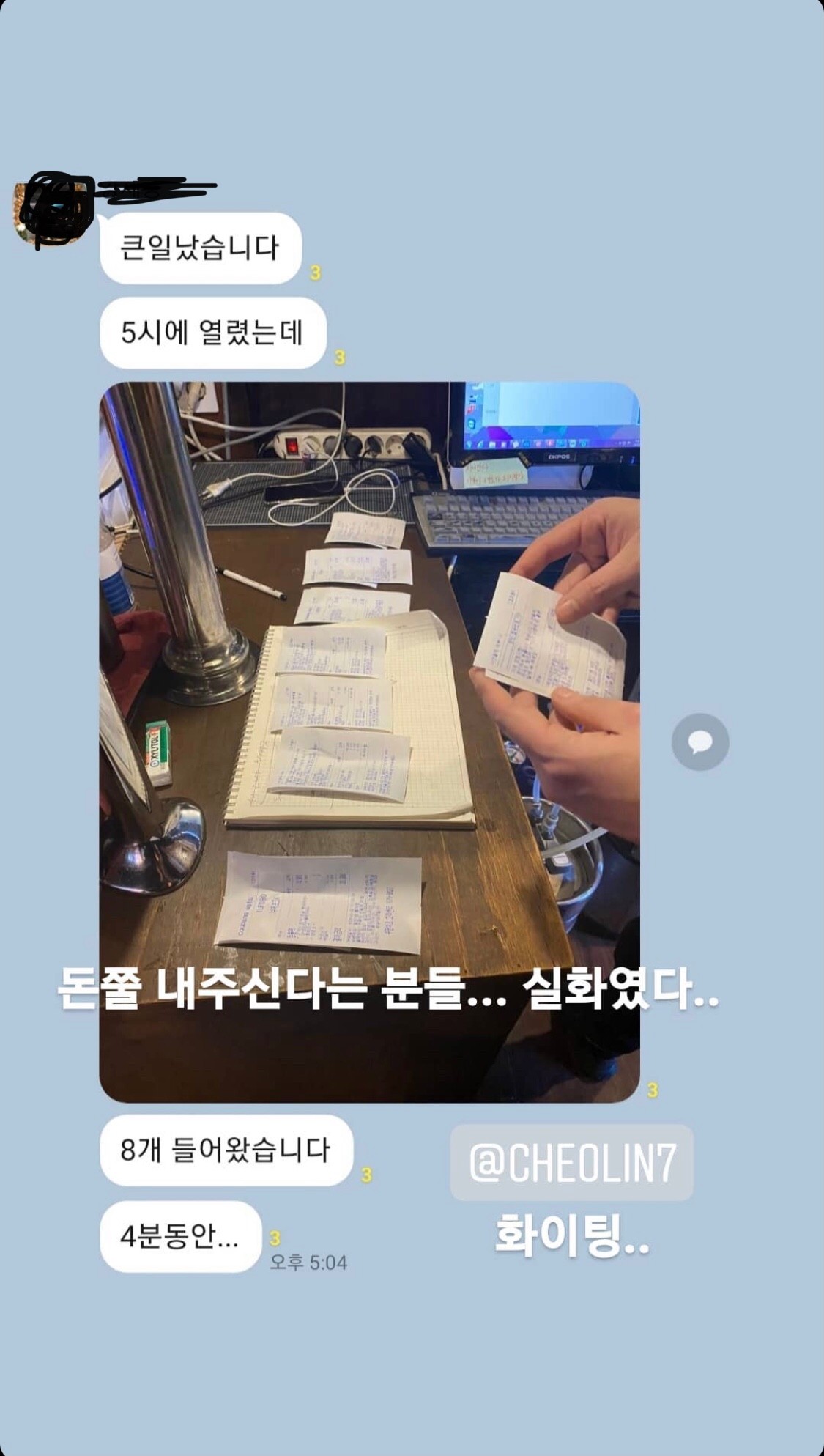 철인 7호 홍대점 박재휘 대표는 15일 인스타그램에 "최근 언론 보도 이후 전국 각지에서 셀 수 없이 정말 많은 분들의 응원과 칭찬도 모자라, 하루에도 감당하지 못할 만큼의 많은 관심으로 말 대로 꿈만 같은 날들로 바쁘게 지내고 있다"라고 근황을 전했습니다.