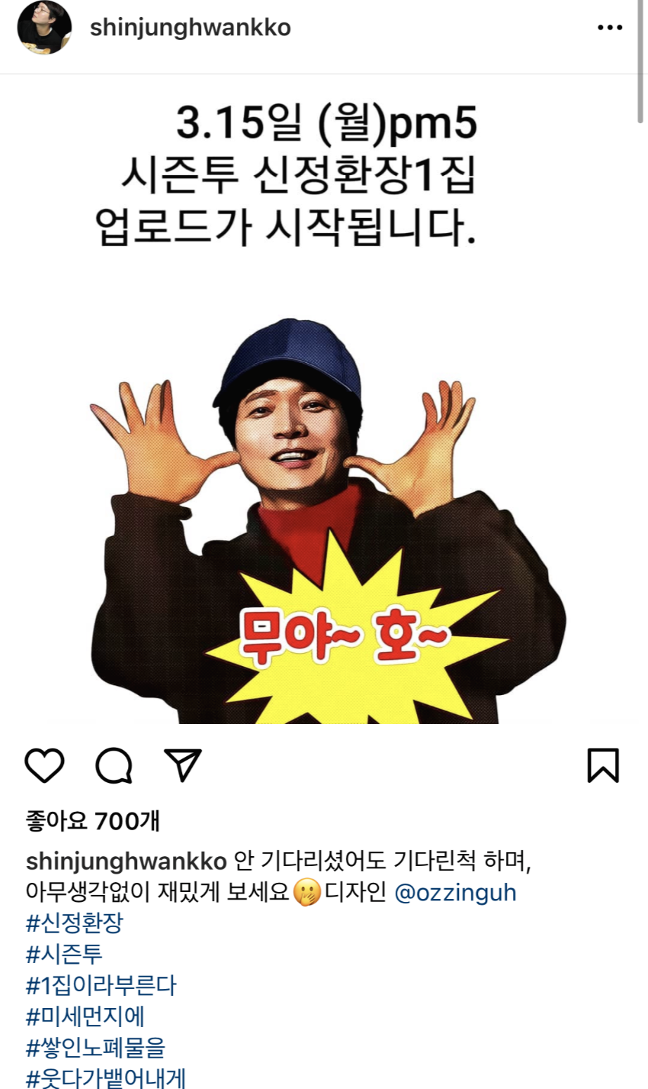 신정환은 지난 15일 자신의 인스타그램에 "안 기다리셨어도 기다린 척하며, 아무 생각 없이 재밌게 보세요"라며 "#신정환장 #시즌투 #1집이라부른다 #미세먼지에 #쌓인노폐물을 #웃다가뱉어내게 #하고싶다"라는 예고 글을 게재했습니다.