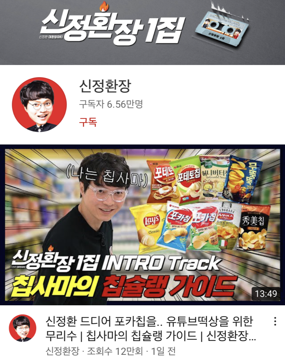 이후 신정환은 자신의 유튜브 채널 신정환장에 '칩사마의 칩슐랭 가이드 신정환장 1집 Intro Track'이라는 제목의 영상을 게재했습니다. 공개된 영상에는 다양한 브랜드의 과자를 맛보고 나름의 평가를 내놓은 신정환의 모습이 담겼습니다.