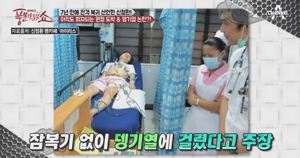 이에 신정환 측은 카지노에 출입했다는 것은 사실이나, 전염병인 뎅기열에 걸리는 바람에 병원에 입원해야 해서 귀국을 하지 못한 것이라고 조작된 입원 사진을 보냈고 이는 곧 거짓으로 밝혀지게 되었습니다.