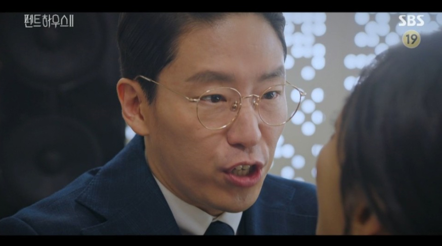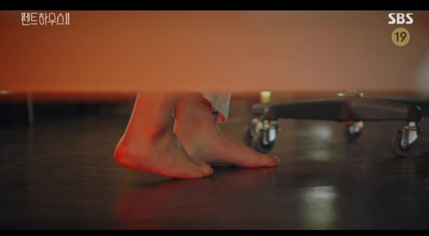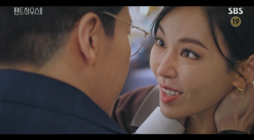 주단태는 천서진에게 펜트하우스 모든 살림을 맡긴다는 결혼 관련 매뉴얼을 건 넨 데 이어, 자신의 허락 없인 하은별을 만나선 안 된다며 청아의료원까지 자신에게 넘기라고 협박했습니다. 이에 분노한 천서진이 이혼을 요구하자, 주단태는 천서진을 비밀공간으로 끌고 가 광기 본색을 드러내며 위협을 가했습니다. 그날 밤, 주석경(한지현)의 도움으로 비밀공간을 빠져나온 천서진은 술에 취해 정신을 못 차리던 주단태의 얼굴을 베개로 압박하려 했지만, 순간 주단태의 세컨폰에서 울린 벨소리가 하은별이 배로나 추락 현장에서 들었던 멜로디와 똑같다는 사실을 깨닫게 되었습니다. 핸드폰에 나애교(이지아)의 이름이 찍힌 것을 확인한 천서진은 청아예술제 당시 찍혔던 사실을 훑어보던 중 주단태가 옷을 갈아입은 행적을 발견, 곧바로 도비서(김도현)에게 나애교에 대해 알아보라고 지시했습니다.
