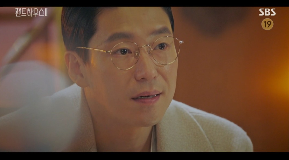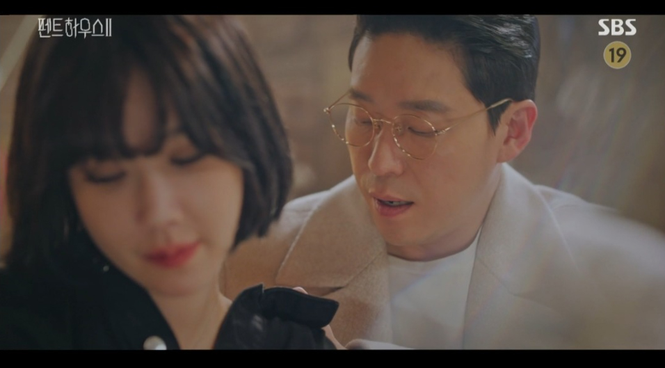 주단태는 천서진에게 펜트하우스 모든 살림을 맡긴다는 결혼 관련 매뉴얼을 건 넨 데 이어, 자신의 허락 없인 하은별을 만나선 안 된다며 청아의료원까지 자신에게 넘기라고 협박했습니다. 이에 분노한 천서진이 이혼을 요구하자, 주단태는 천서진을 비밀공간으로 끌고 가 광기 본색을 드러내며 위협을 가했습니다. 그날 밤, 주석경(한지현)의 도움으로 비밀공간을 빠져나온 천서진은 술에 취해 정신을 못 차리던 주단태의 얼굴을 베개로 압박하려 했지만, 순간 주단태의 세컨폰에서 울린 벨소리가 하은별이 배로나 추락 현장에서 들었던 멜로디와 똑같다는 사실을 깨닫게 되었습니다. 핸드폰에 나애교(이지아)의 이름이 찍힌 것을 확인한 천서진은 청아예술제 당시 찍혔던 사실을 훑어보던 중 주단태가 옷을 갈아입은 행적을 발견, 곧바로 도비서(김도현)에게 나애교에 대해 알아보라고 지시했습니다.