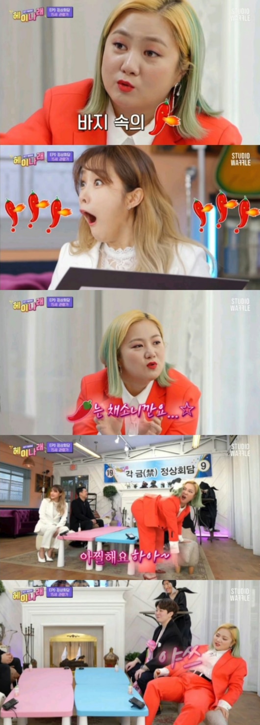 지난 9일 방송된 헤이나래에서 남자 게스트 앞에서 "바지 속의 고추"라는 발언을 했고 과한 19금 언행으로 보는 이들을 깜짝 놀라게 했습니다.