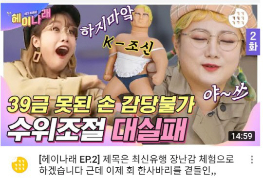 지난 23일 공개된 '[헤이나래 EP.2] 39금 못된 손 감당불가. 수위조절 대실패'라는 제목의 영상이 남성을 성희롱했다는 비판이 제기되며 문제가 되고 있습니다.