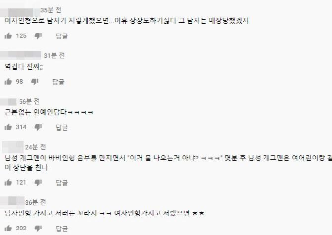 해당 영상은 최신 유행 장난감 체험하는 내용인데요, '암스트롱맨'이라고 소개한 인형을 두고 박나래는 인형을 만지며 "너무 뒤가 T가 아니냐", "너무 Y다", "아 그것까지 있는 줄 알았지"등의 아슬한 발언을 이어 갔습니다.