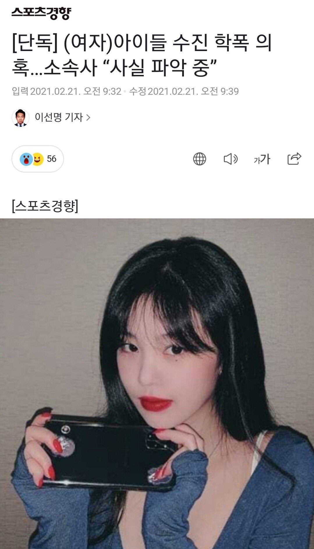 2021.02.22 - [연예] - 수진 여자아이들 충격 학교 폭력 의혹 실체 (+증거 사진, 수진 공식입장)