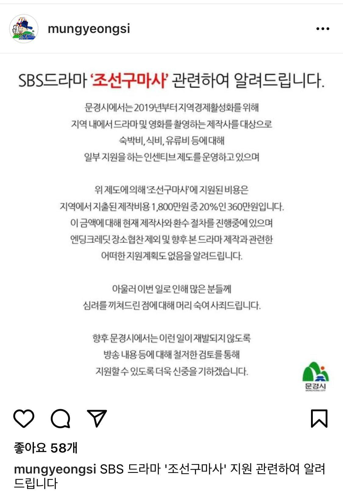 또한 조선구마사 광고 안마의자 판매 기업 코지마, 에이스 침대, LG 생활건강, 반올림피자샵, KT, 바디프랜드, CJ제일제당 등 광고주들은 서둘러 광고 철회 사실을 알렸습니다. 제작 지원에 나섰던 쌍방울 또한 24일 공식 SNS를 통해 계약 해지를 알렸습니다. 문경시, 나주시 등 지자체도 손절에 나섰습니다.