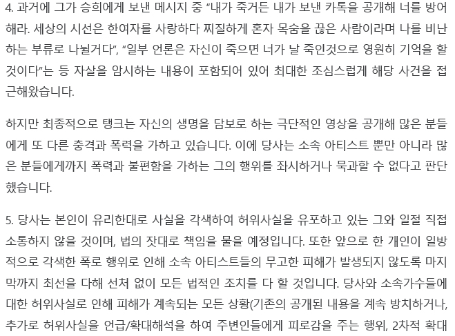 2021.03.25 - [연예] - 승희 저격 탱크 극단적 선택 암시 충격 (+승희 카톡 공개)
