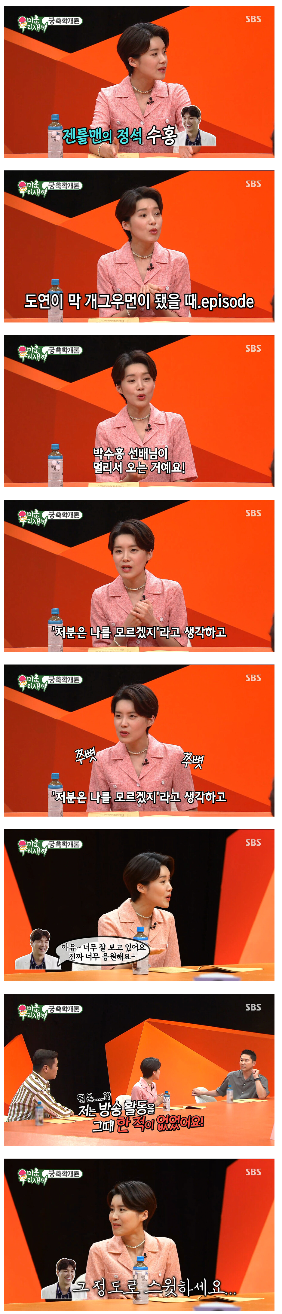개그맨 장도연 역시 미운 우리 새끼에 출연해 박수홍 미담을 이야기 하기도 했습니다. 박수홍은 신인 시절의 장도연을 보고 "너무 잘 보고 있다, 응원한다"며 응원의 메시지를 전달했다고 합니다.