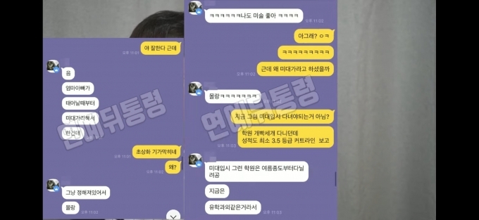 유튜버 이진호는 "고등학생이라는 사실을 공개할 필요가 없어 하지 않았던 추가 메시지를 공개한다"며 미술 공부를 하고 있다는 내용의 카톡 메시지를 공개했습니다. 부모에게 받은 것이 있냐며 자신은 강남 아파트 한채를 받았다는 제보자의 말에 박수홍 조카는 "엥 고작 하나. 그거 가지고 나한테 뭐라 하는거냐"라고 답하는 등 부를 과시하기도 했습니다.