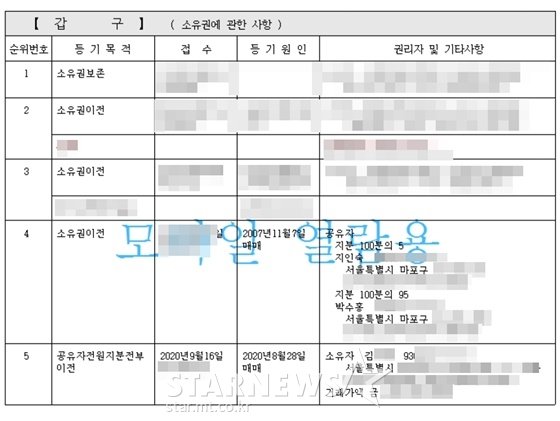 박수홍 형 박진홍 측이 주장한 박수홍 여자친구는 1993년생으로 박수홍이 거주 중인 상암동 아파트의 명의자입니다. 등기부 등본에 따르면 이 아파트는 지난해 9월 박수홍과 어머니의 공동소유에서 이 여성으로 소유자 명의 변경이 이뤄졌습니다.