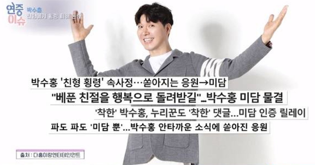 박수홍의 이번 사태와 관련 많은 누리꾼들은 "본질을 흐리지 마라", "친형의 횡령이 주요한 사건일 뿐이다", "사생활 폭로로 여론을 호도하는 행위는 없어져야 한다"며 박수홍의 편을 들고 있습니다.