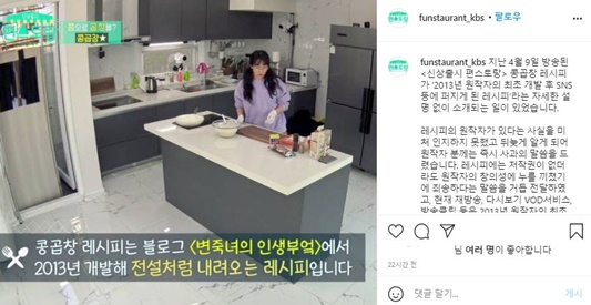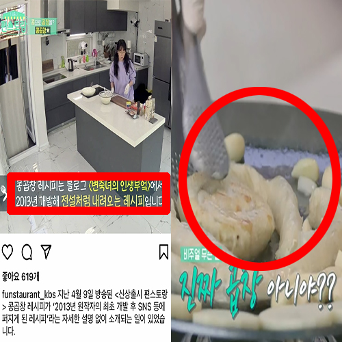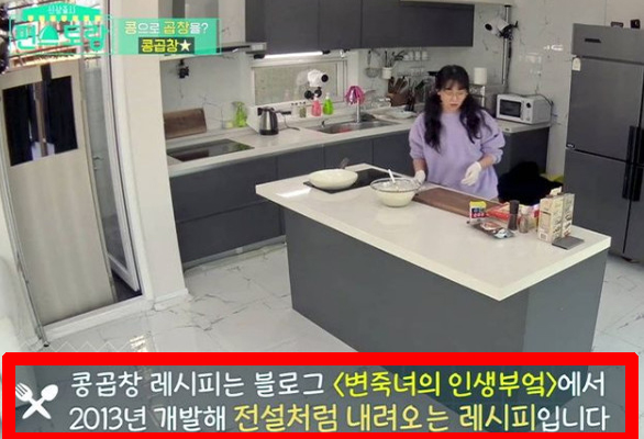 그러다 지난 9일 방송에서 이유리가 선보인 콩곱창 레시피는 주인이 따로 있었는데요, 2018년 네이버 블로그 '변죽녀의 인생부엌'에서 이미 소개돼 온라인에서 공유됐던 레시피였습니다.