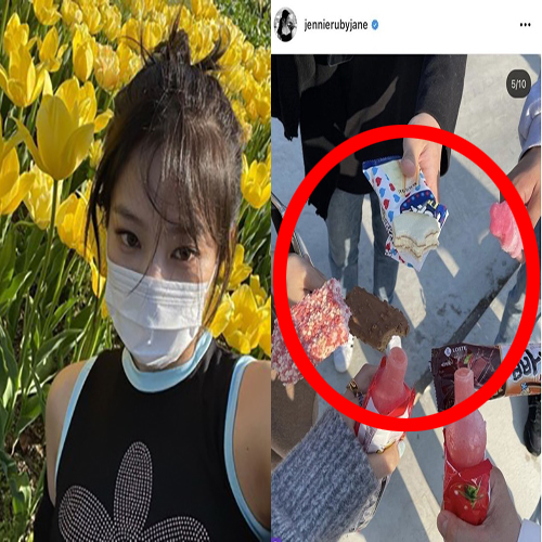 제니는 지난 14일 자신의 개인 SNS에 "나들이"라는 글과 함께 경기도 파주시에 위치한 한 수목원에서 찍은 사진 여러 장을 공유했습니다. 이 가운데 7인(제니, 댄서들)이 한데 모여 각자 아이스크림을 든 채 손을 모으고 있는 사진도 게재되었습니다.