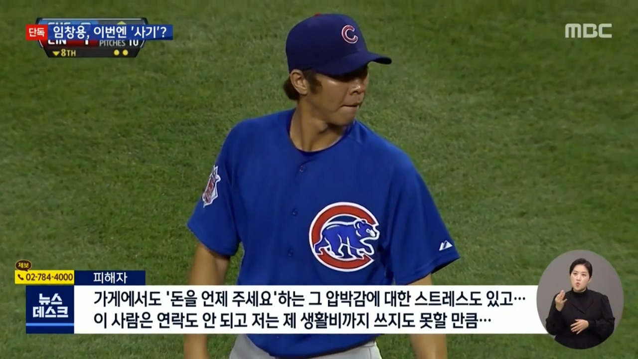 지난해 12월 임창용이 입건된 사실이 알려졌을 당시 피해 여성 A씨는 MBC 뉴스데스크 보도를 통해 "임씨가 사업상 필요하다며 '3시간만 쓰고 갚겠다'고 해 돈을 빌려줬지만 한 달 뒤 1000만원만 갚은 뒤 연락이 닿지 않고 있다"고 주장했습니다.