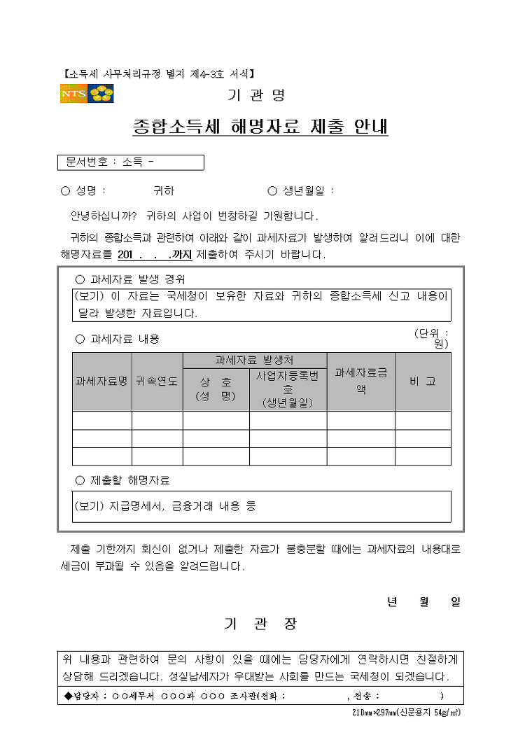 ▷종합소득세 신고 안하면 불이익 두 번째. 소명요구