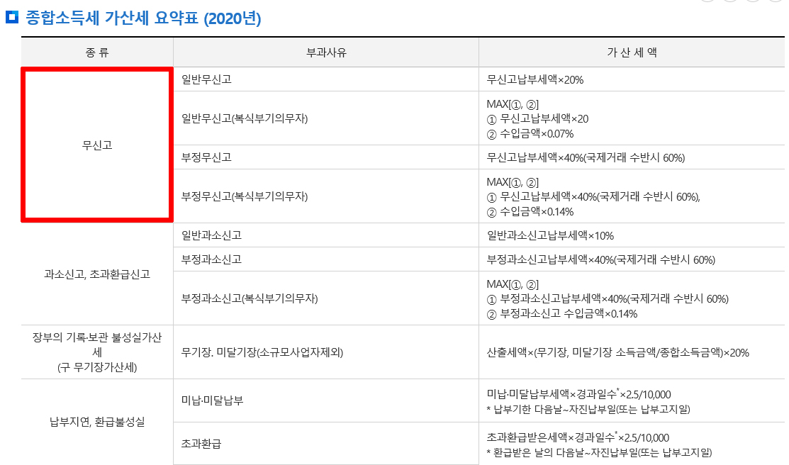 ▷종합소득세 신고 안하면 불이익 첫 번째. 가산세