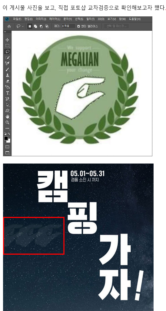 이를 두고 일부 커뮤니티에는 손 모양이 남성 혐오 논란과 함께 폐쇄된 유명 여성주의 커뮤니티 메갈리아의 로고와 유사하다는 지적이 나왔습니다. 또 영어 문구의 마지막 알파벳을 아래서부터 위로 읽으면 '메갈(magal)'이라는 의견도 잇달았습니다.