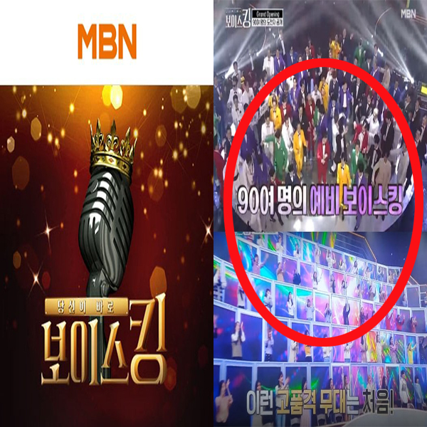 지난달 13일 방송을 시작한 '보이스킹'은 연예인 출연자 90명이 참가, 경연을 펼치는 대형 오디션 프로그램입니다. 대형 프로젝트인 만큼 코로나19 확진자가 발생하면서 현재 비상이 걸렸습니다.