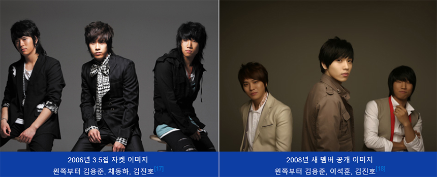 소몰이창법으로 유명한, 2004년대 중후반을 휩쓴 발라드 그룹인데요, 데뷔부터 2007년까지 채동하(리더), 김용준, 김진호 3명의 멤버로 활동하다가 2008년 채동하의 탈퇴와 함께 새 멤버 이석훈의 영입으로 현재 김용준(리더), 이석훈, 김진호 체제로 유지중입니다.