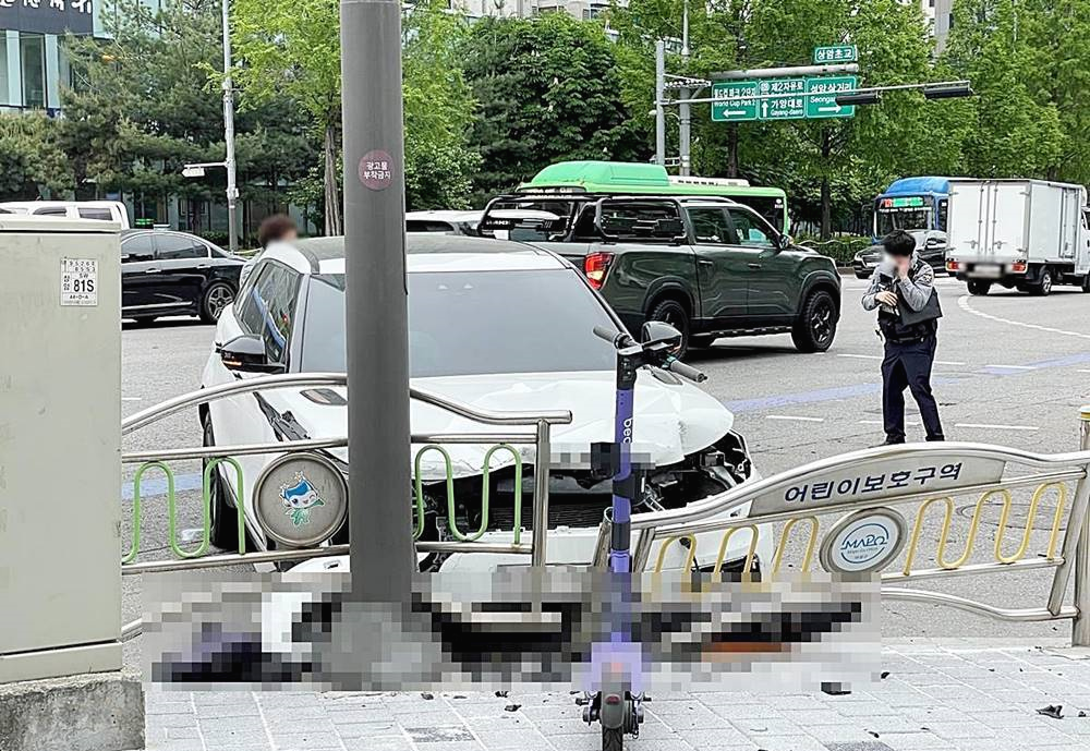 마포경찰서에 따르면 이날 오전 10시 28분쯤 서울 마포구 상암동 상암초등학교 앞 사거리에서 박신영이 운전하던 SUV차량과 오토바이가 충돌해 오토바이 운전자인 배달노동자 50대가 사망했습니다.