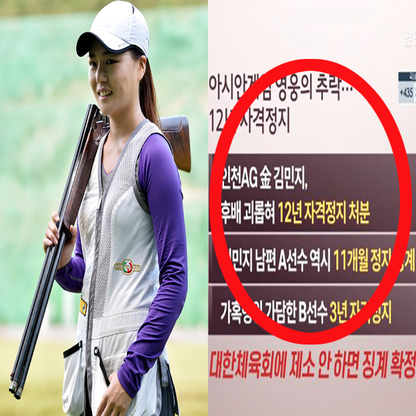 지난달 사격 국가대표 김민지와 그의 남편인 사격 국가대표 A, 아시안게임에서 메달이 딴적 있는 지방 실업팀 소속의 B 선수 등으로부터 수년간 폭언 등 괴롭힘을 당해 왔다는 한 선수의 피해 주장을 확인한 대한사격연맹은 김민지에게 12년의 자격정지 처분을 내렸습니다.