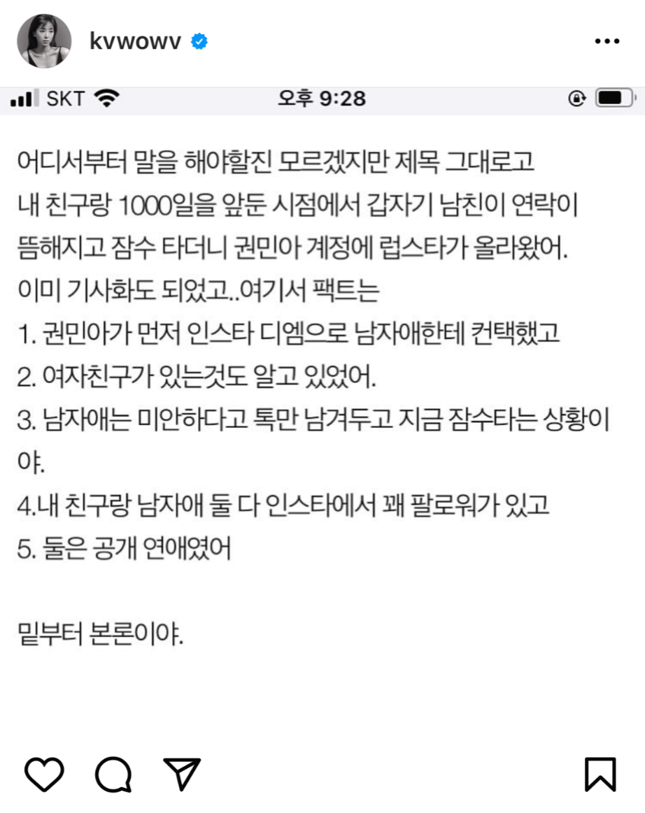 권민아 인스타그램 남친 양다리 의혹에 심각한 현재 상황 (+해명)