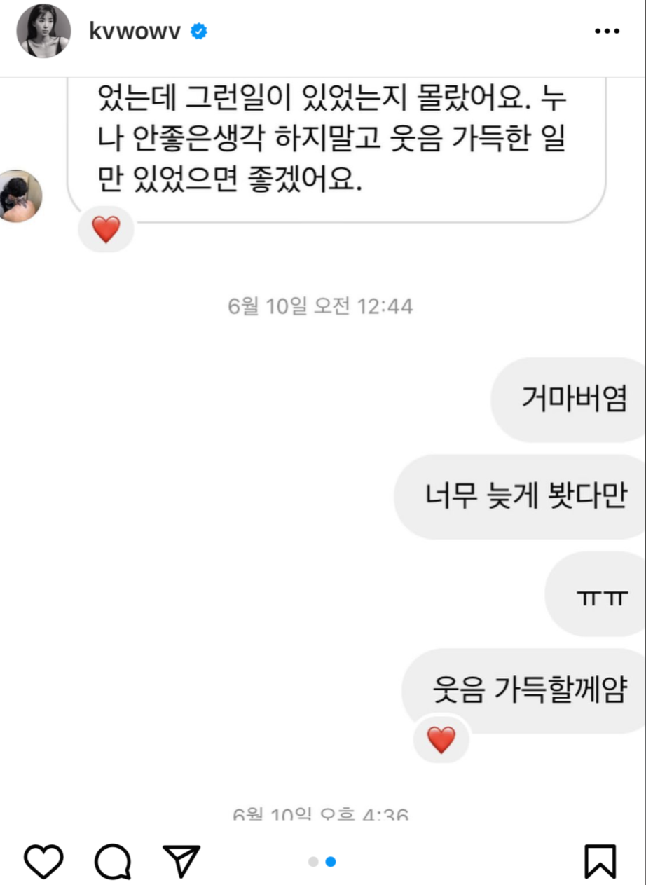 댓글로 누가 디엠을 먼저 안보낸 것을 인증하라고 하시길래 인증은 하겠습니다. 왜 굳이 이렇게까지 해야하는지 모르겠지만 일반사람과 대화를 나누는 것이 잘 못 된것인가요?