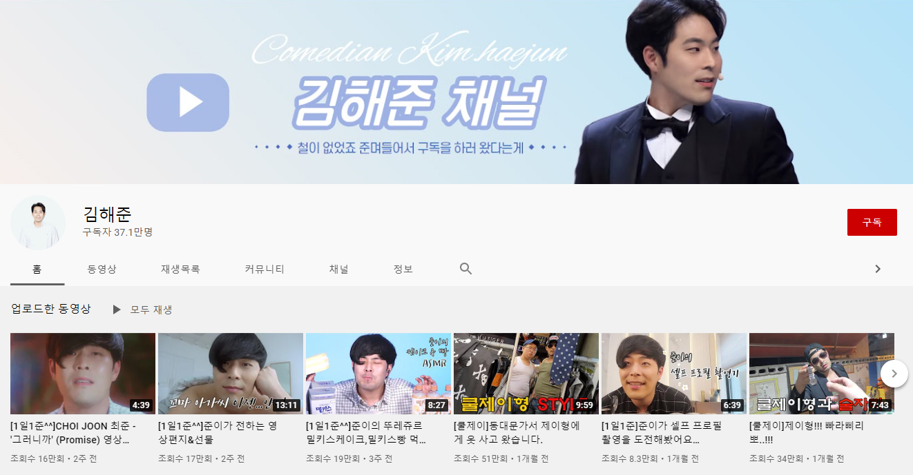 김해준 유튜브 주소 : https://www.youtube.com/channel/UCPwGQuQiIqvUTfa_OKZL7qQ