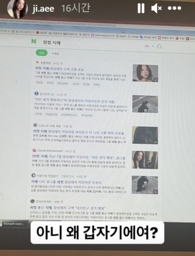와썹 지애는 "그니까 갑자기 왜요? 나 이제 무서워"라며 "그냥 되게 개인적인 문제인데 그게 남자든 여자든 마치 되게 큰일인 것처럼 기사가 나는 게 의문이다"라고 밝혔습니다.