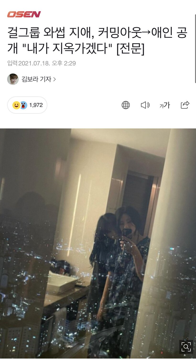 걸그룹 와썹 출신의 지애는 지난 1월 11일 자신의 인스타그램에 "사랑스러운 여자친구가 생겨 행복하다"며 인증샷을 공개한 바 있는데요, 또한 지애는 남녀 모두를 사랑한다는 글과 함께 자신의 모습을 담은 두 장의 사진을 게재했습니다.