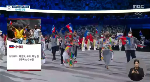 2020 도쿄올림픽 개막식을 생중계한 MBC가 각국 선수단 소개 때 부적절한 사진과 문구를 사용한 것과 관련해 논란이 이어지고 있습니다.