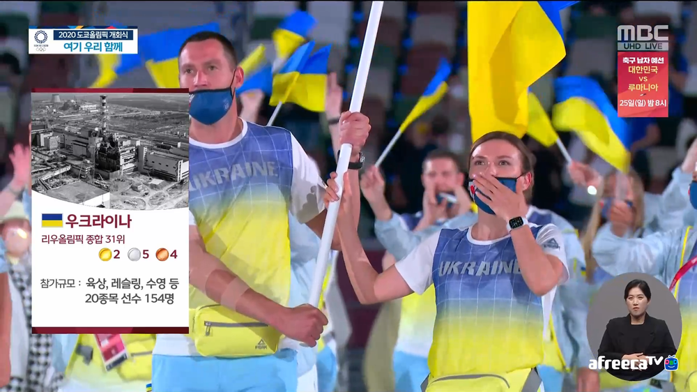 MBC 올림픽 개막식 중계에서 우크라이나 대표팀이 등장할 때 1986년 체르노빌 원전 사고 현장 사진을 내보냈고, 엘살바도르 대표팀이 등장할 때는 비트코인 사진을 송출했습니다.
