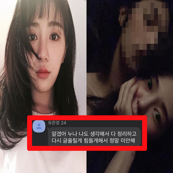 유준영이 양다리 논란에 휩싸이자 "헤어진지 얼마 안돼서 만나게 된 것은 눈살 찌푸려질 수 있는 걸 이해하지만 허위글로 인해 상처 받고 싶지 않다"라며 두둔한 바 있습니다.