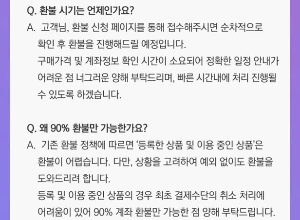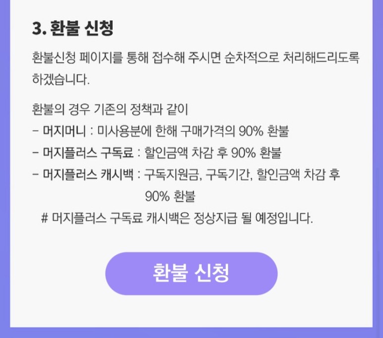 -머지머니: 미사용분에 한해 구매가격의 90% 환불