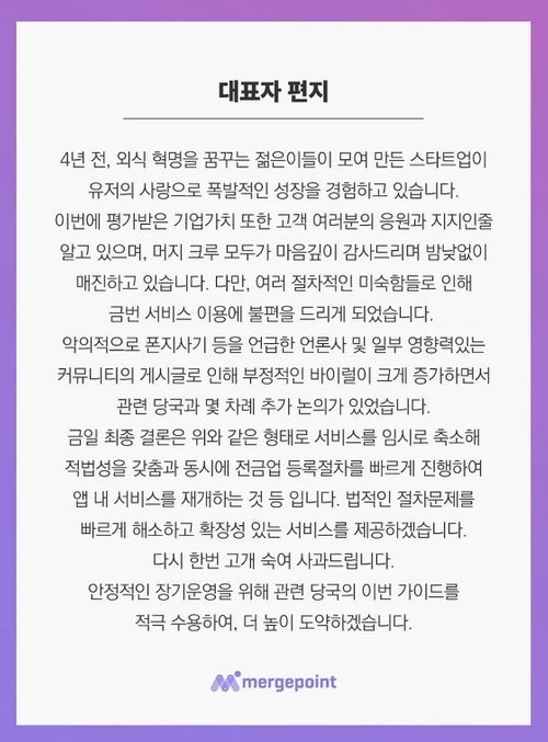 이에 머지플러스가 "법률 검토 결과가 나올 때까지 당분간 서비스가 중단된다"고 예고하면서 지난 11일 이용자가 몰리며 앱에 접속할 수 없는 오류도 나타났습니다.