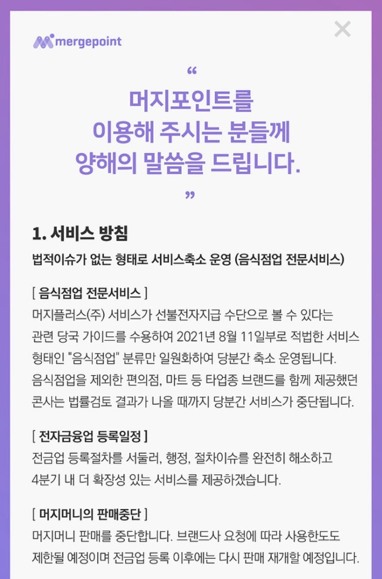 할인 결제 모바일 플랫폼 머지포인트가 포인트 판매를 중단하고 서비스를 축소 운영하면서 대규모 환불 사태에 논란이 되고 있는데요, 자세한 내용 알아보겠습니다.