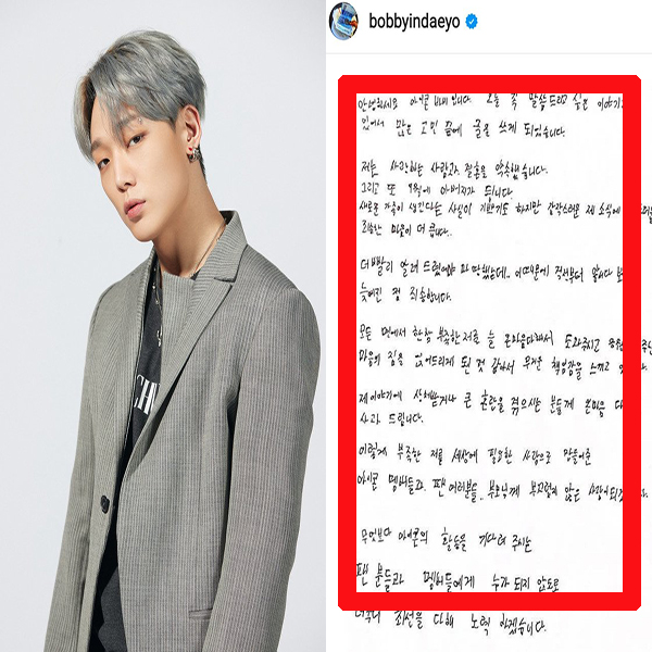 바비는 "더 빨리 알려 드렸어야 마땅했는데 이 때문에 걱정부터 앞서다 보니 늦어진 점 죄송하다"고 거듭 사과했는데요, 바비는 "모든 면에서 한참 부족한 저를 늘 온 마음 다해서 도와주시고 응원해 주신 분들께 마음의 짐을 얹어드리게 된 것 같아서 무거운 책임감을 느끼고 있다"고 밝혔습니다.