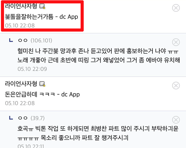 라이언전 여자 아이돌 성희롱 단어 사용 해명, 사과