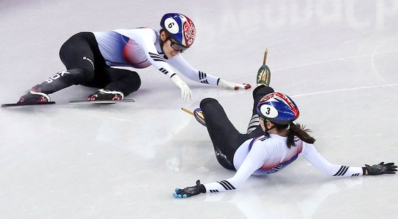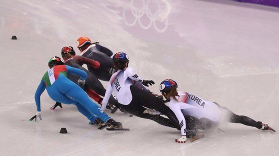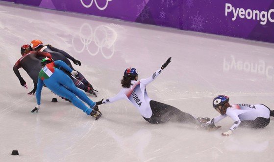 2018년 2월 22일 평창올림픽 쇼트트랙 여자 1000m 결승에서 심석희와 최민정이 서로 부딪혀 넘어졌습니다. 마지막 바퀴에서 최민정이 바깥으로 크게 돌며 치고 나오다 코너 부분에서 심석희와 충돌했습니다.