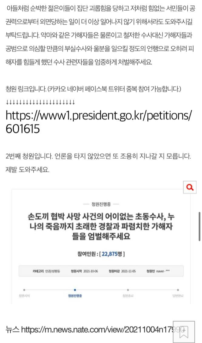 서산 손도끼 사건 청원 (+원본)