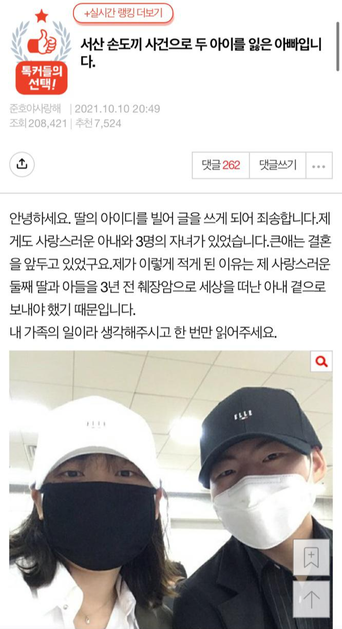 지난 10일 온라인 커뮤니티에는 '서산 손도끼 사건으로 두 아이를 잃은 아빠입니다'라는 제목의 글이 올라왔습니다.