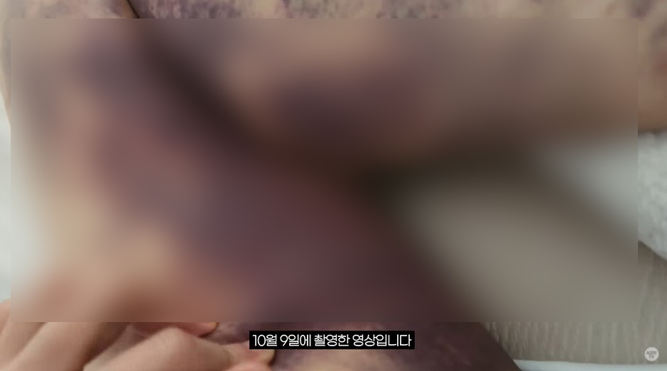 아옳이는 오전 10시에 마취를 하고 주사를 맞았다고 하는데요, 눈을 떠보니 밤 8~9시였고 머리부터 발끝까지 멍이 들어 엄청난 충격을 받았다고 합니다.